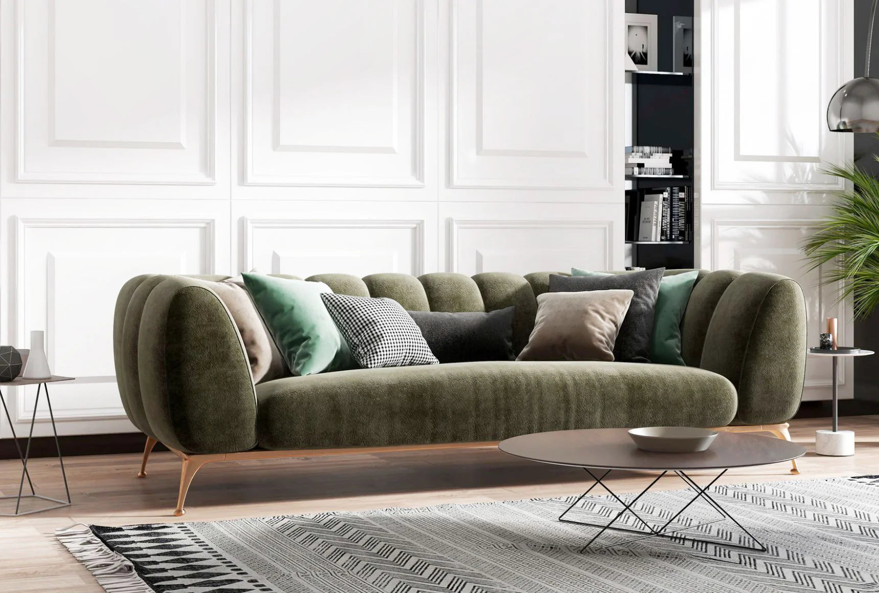 Modern 3-Seater Relaxing Sofa in Luxury Fabric – Sculptural Design and Exceptional Comfort
