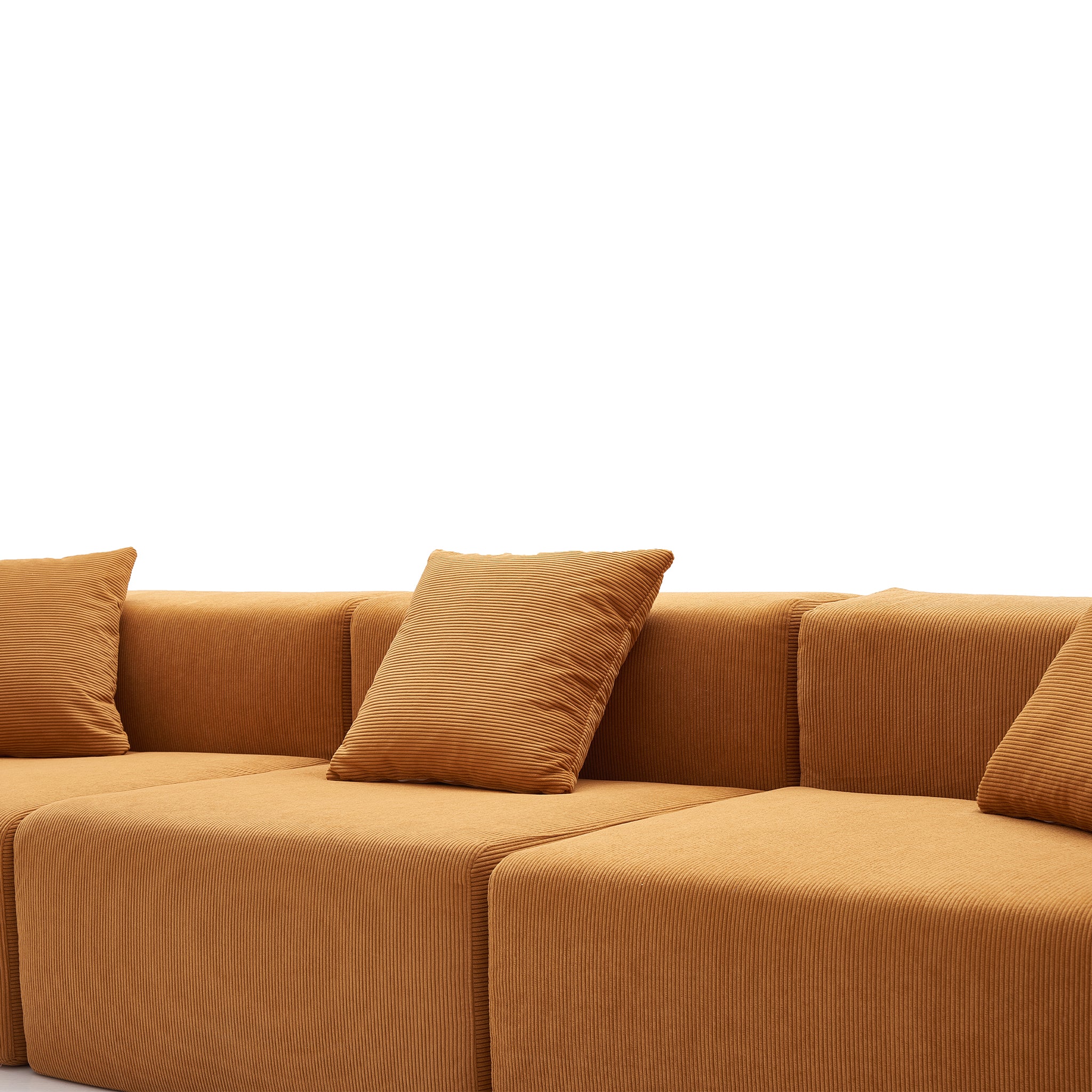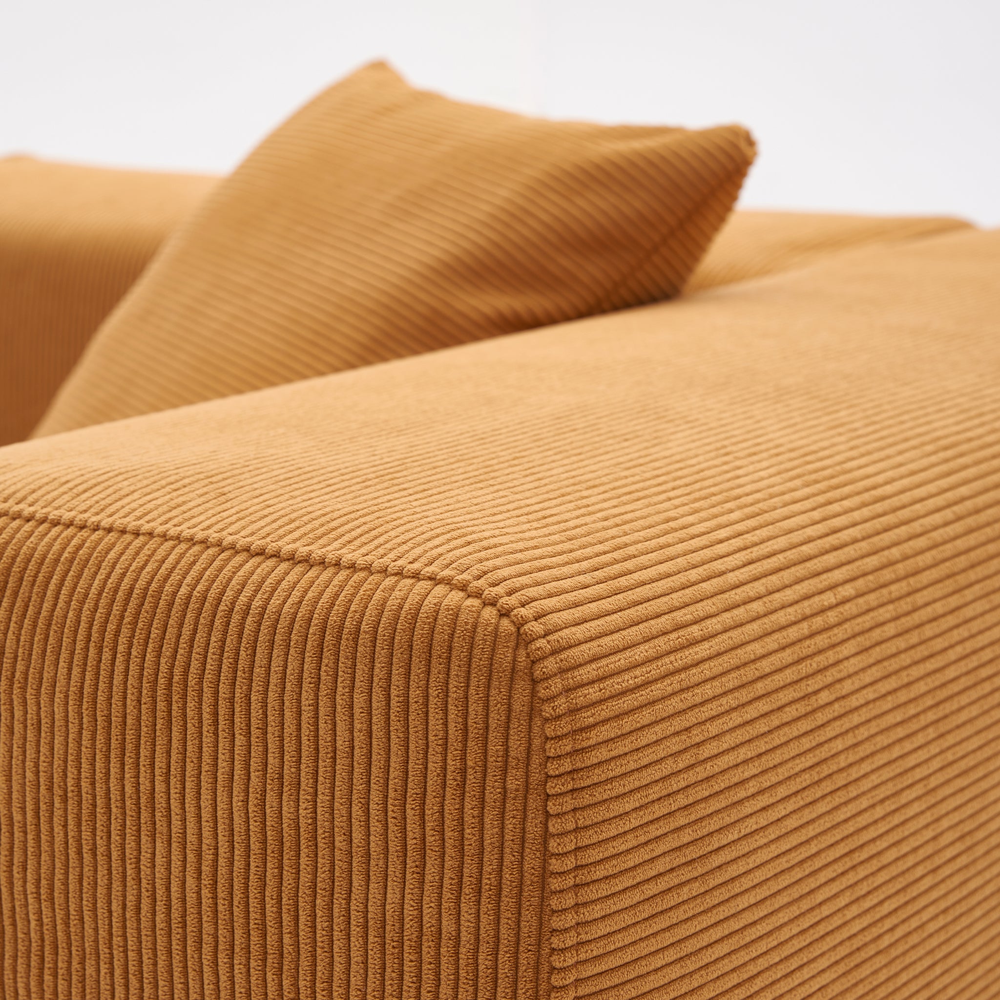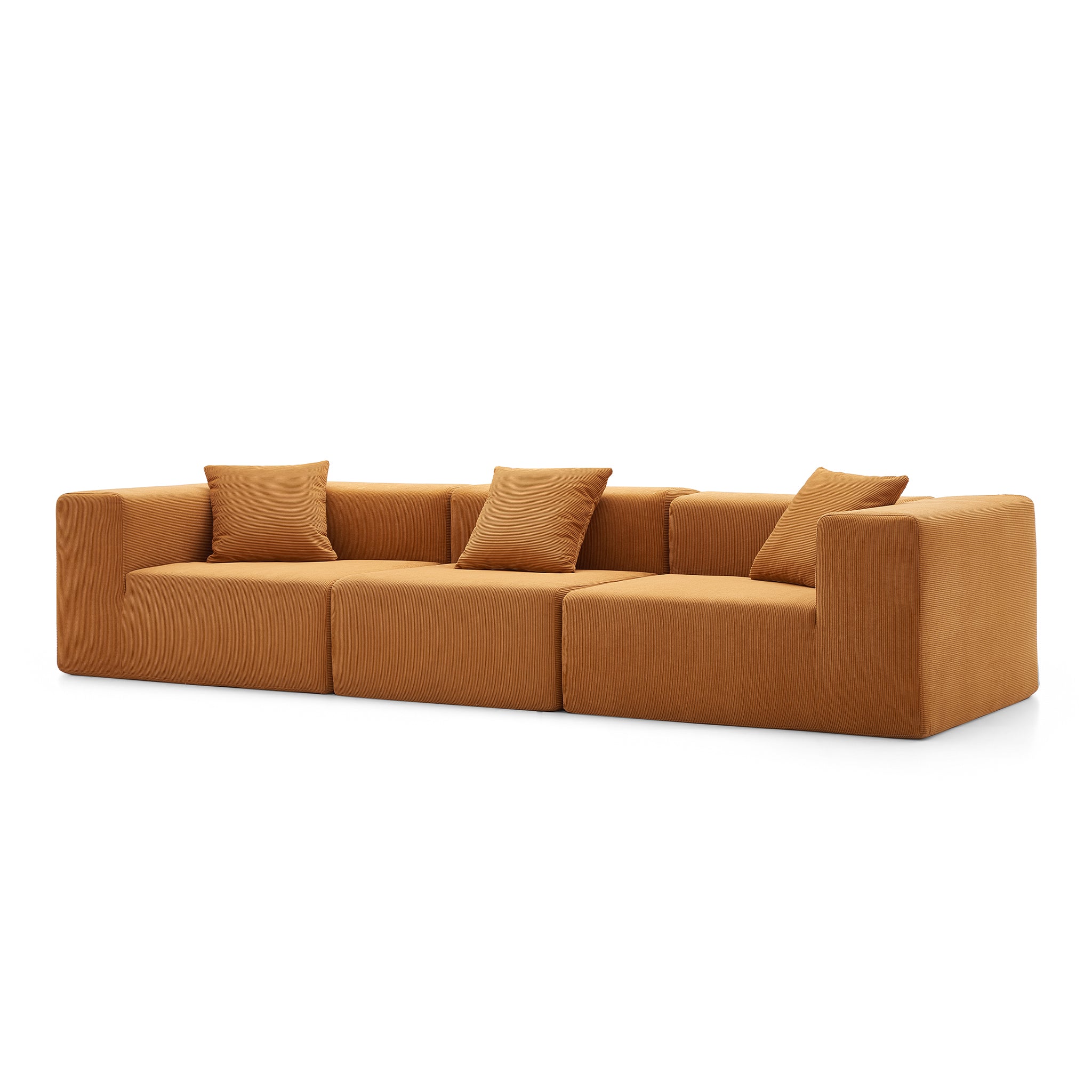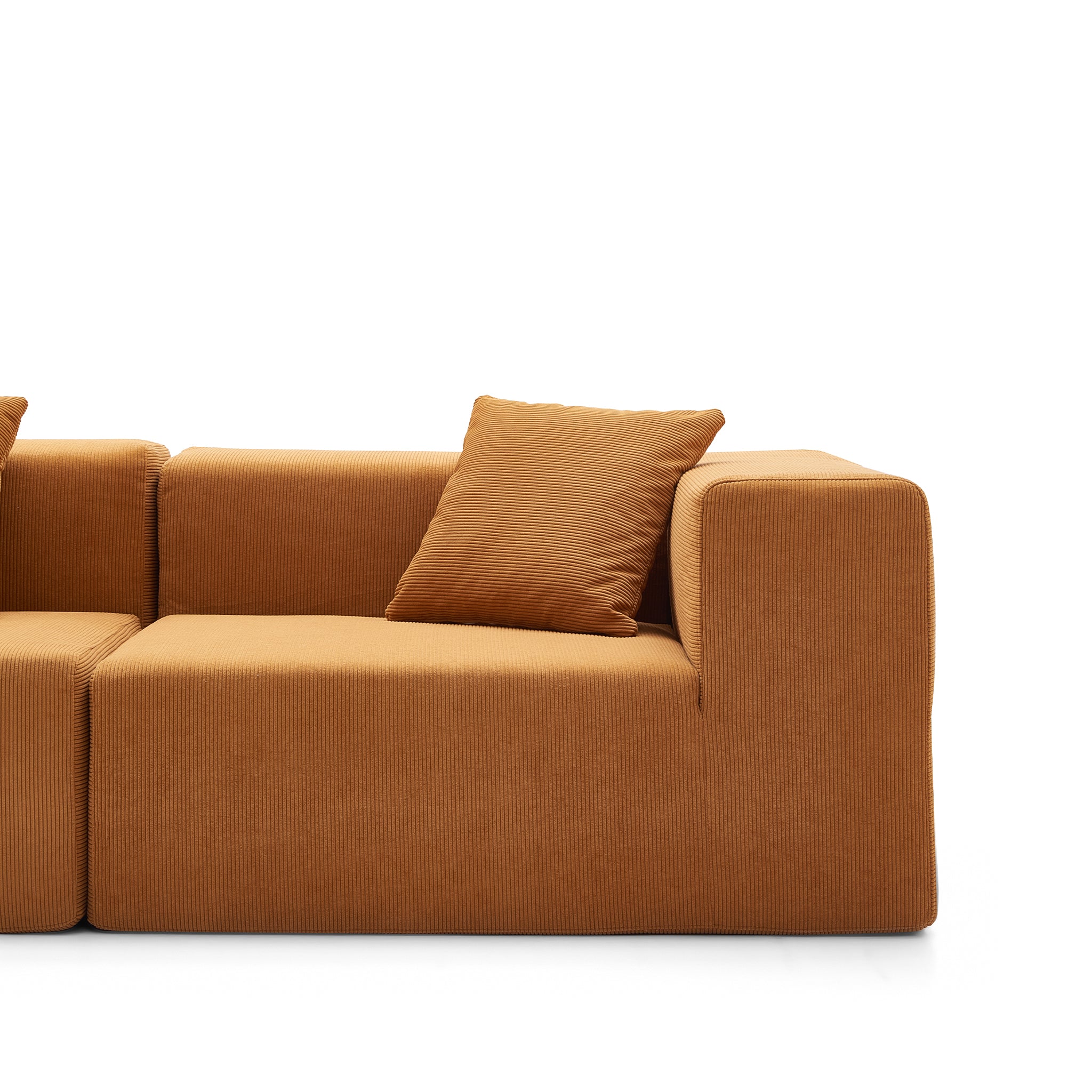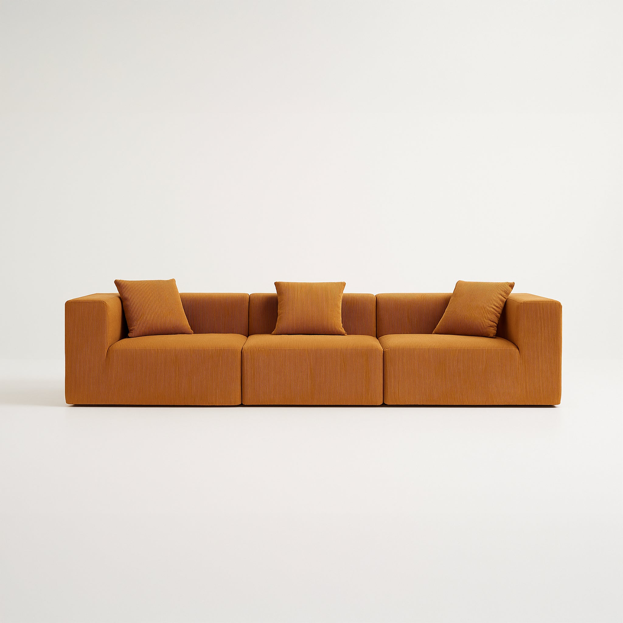 This 3-seater sofa in sanded corduroy combines contemporary design with compressible engineering. Its cube-shaped silhouette, warm ribbed fabric, and dual-density foam offer a perfect balance between aesthetics and ergonomics.
