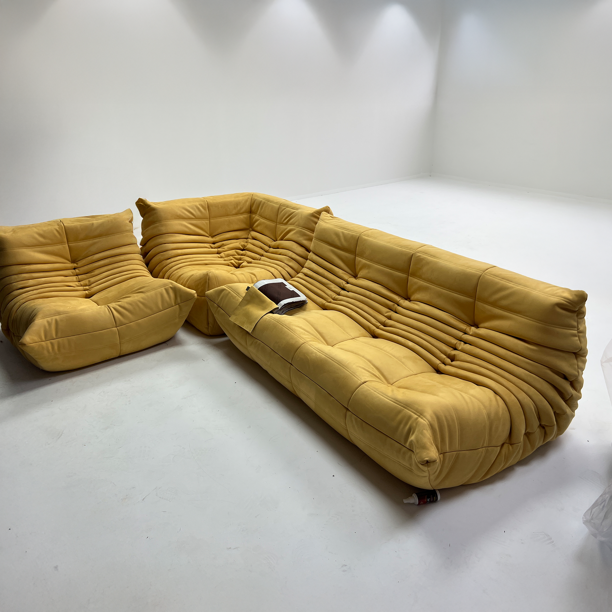 Low, deep seat with no rigid frame. High-density padding ensures optimal relaxation while maintaining its shape over time. A feeling of lightness thanks to a soft, fluid internal structure.