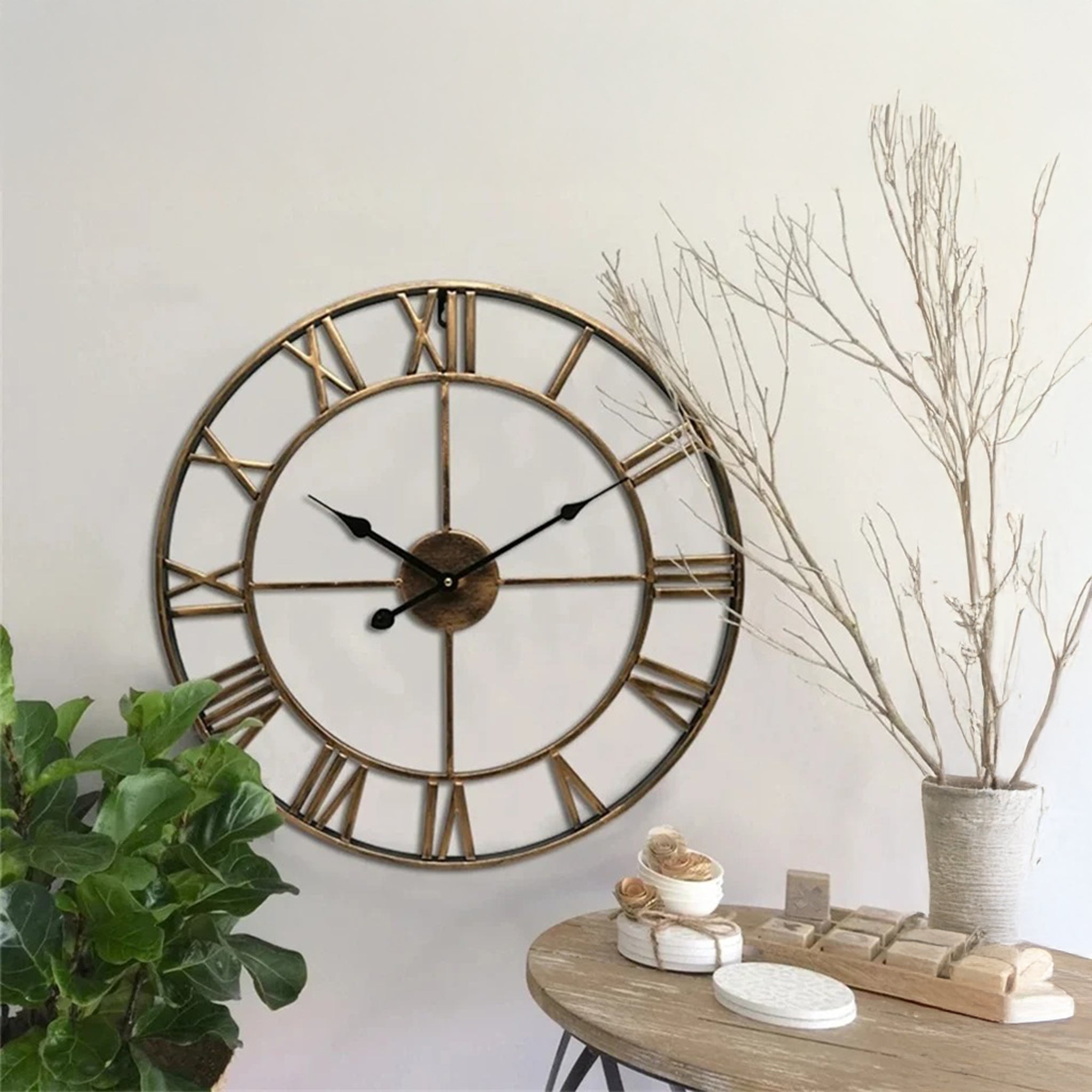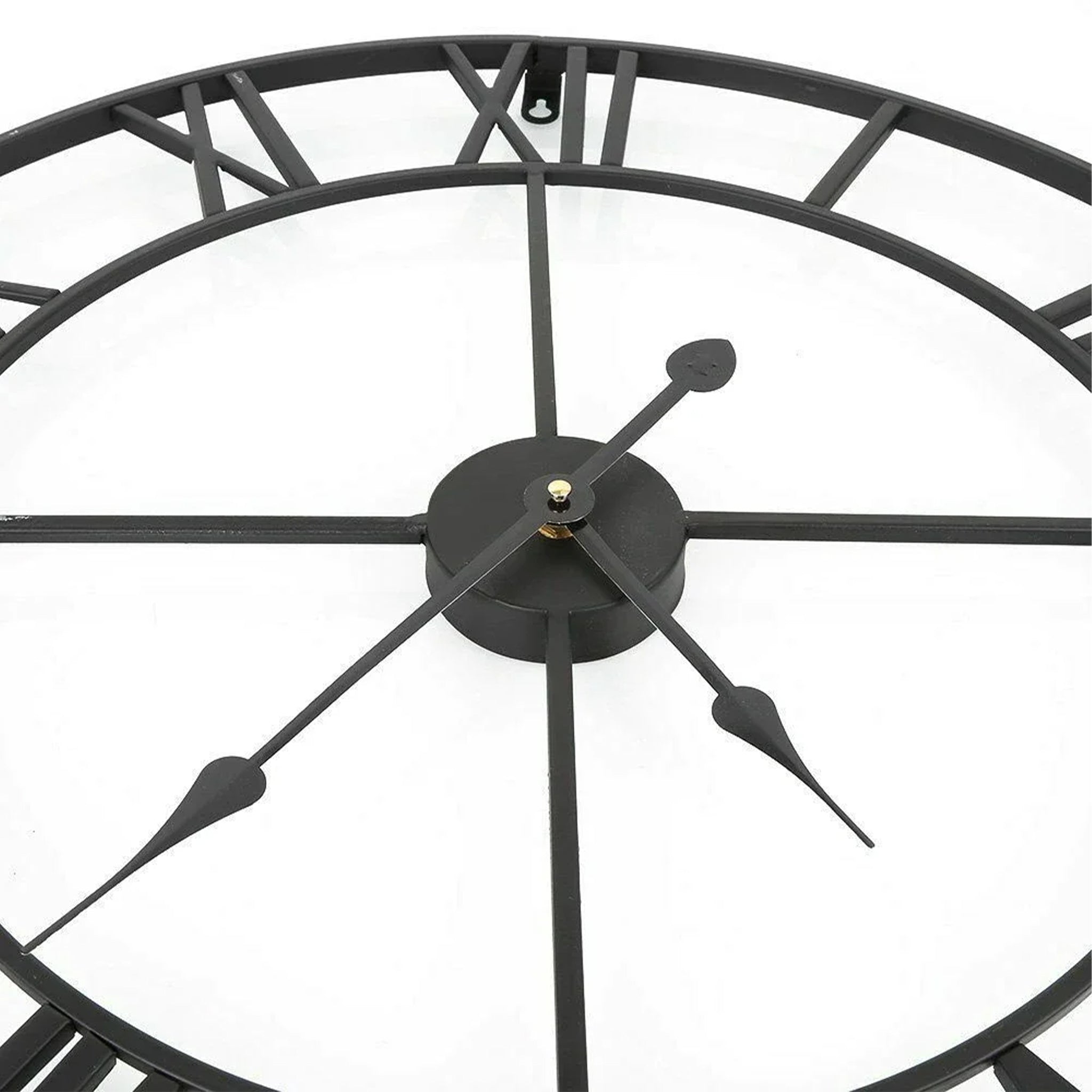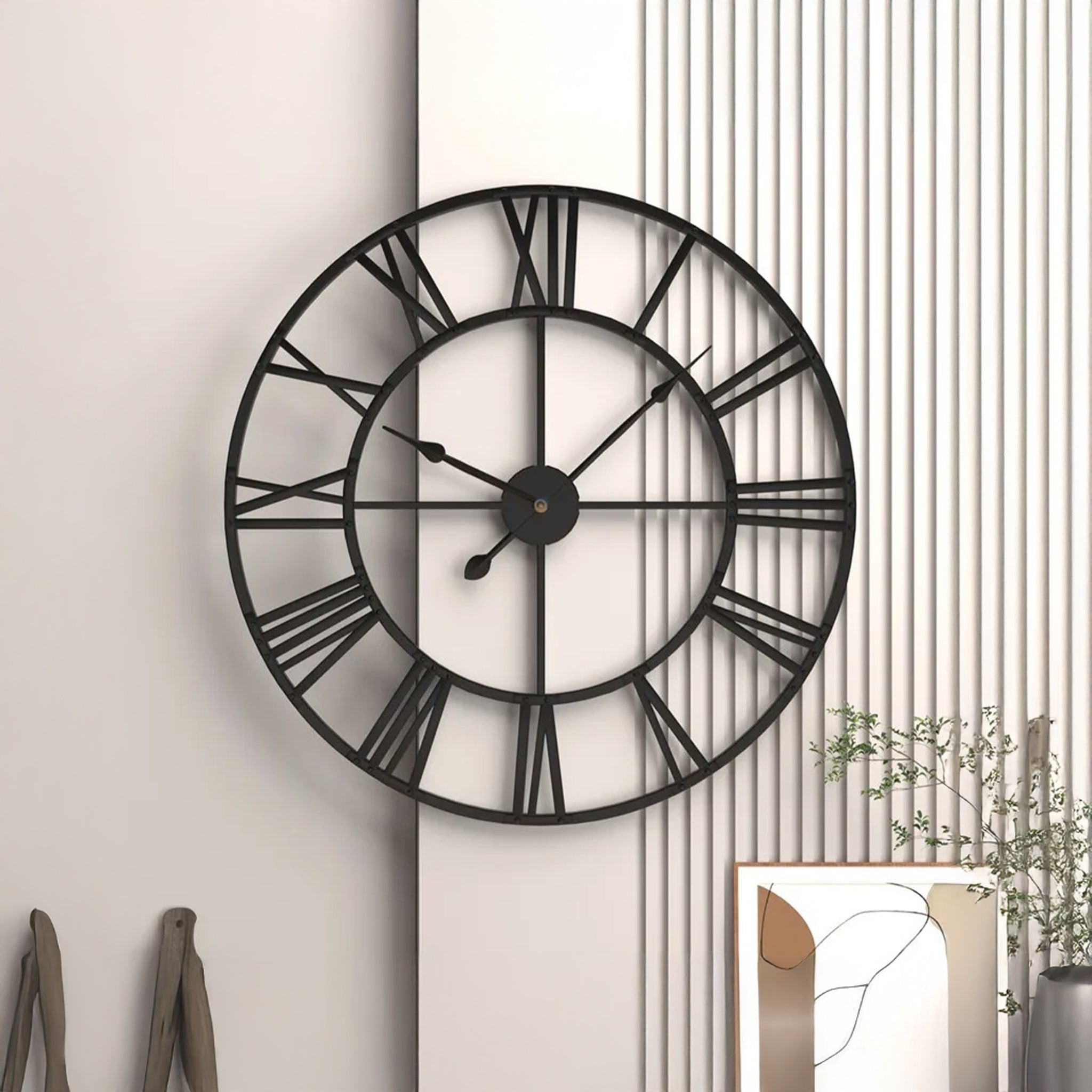 Elevate the atmosphere of your home with our wrought iron wall clock , a refined blend of classic charm and modern design. Designed with an openwork structure and raised Roman numerals, this piece offers an architectural aesthetic ideal for a living room, office, or sophisticated entryway.