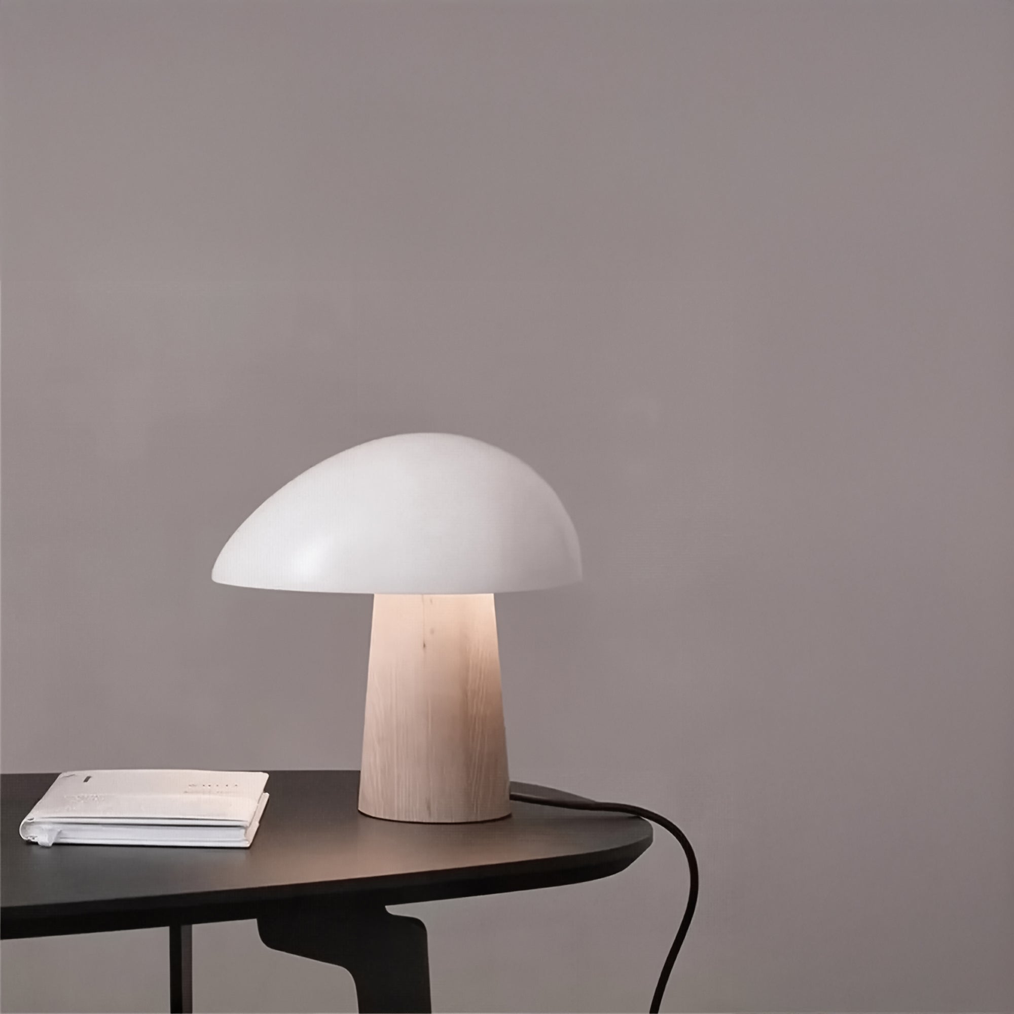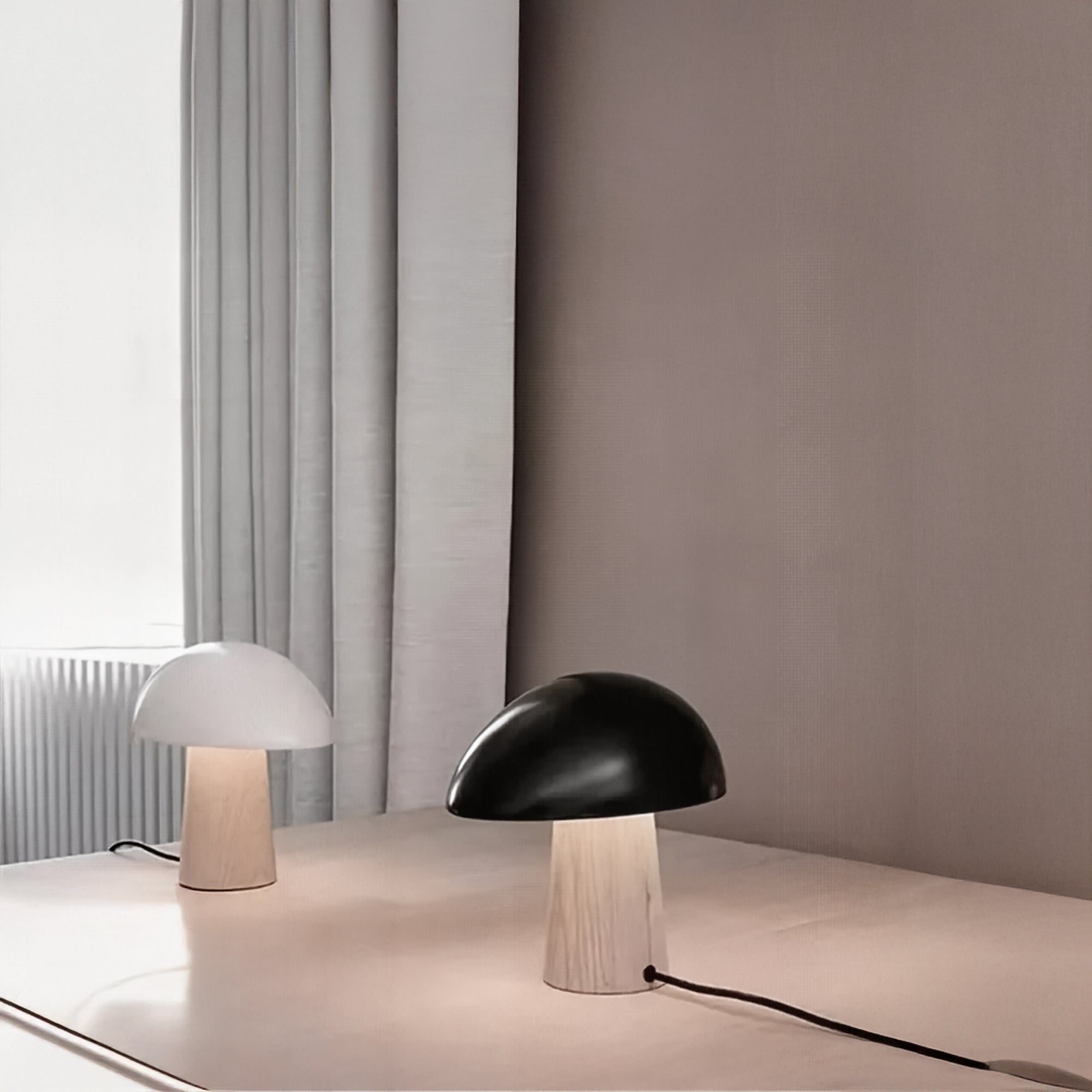 Minimalist, warm, and sculptural, this table lamp draws inspiration from iconic Nordic design. Its natural wood base pairs with a smooth , hemispherical shade , creating a soft, organic silhouette that's ideal for enhancing a bedroom, living room, or reading space.
