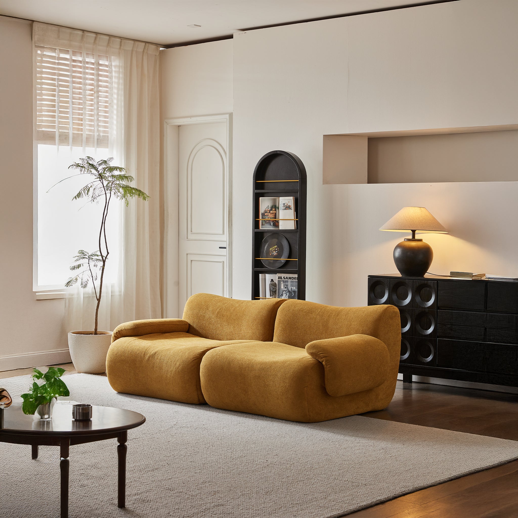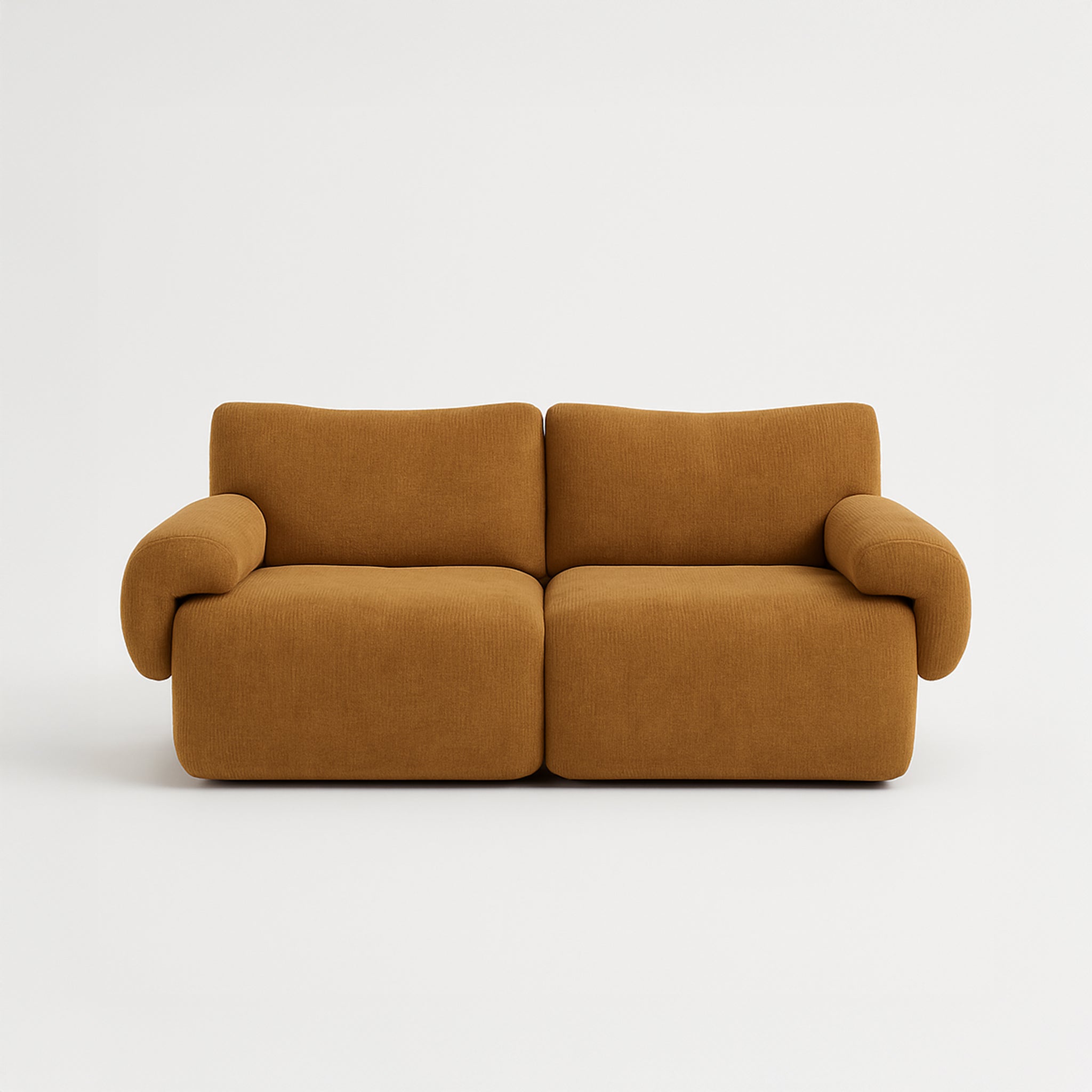 A sculptural silhouette, two generous modules, and enveloping comfort: the Sahara 2-seater redefines contemporary elegance. Its organic curves and honey-colored sandblasted fabric create a warm and refined atmosphere.
