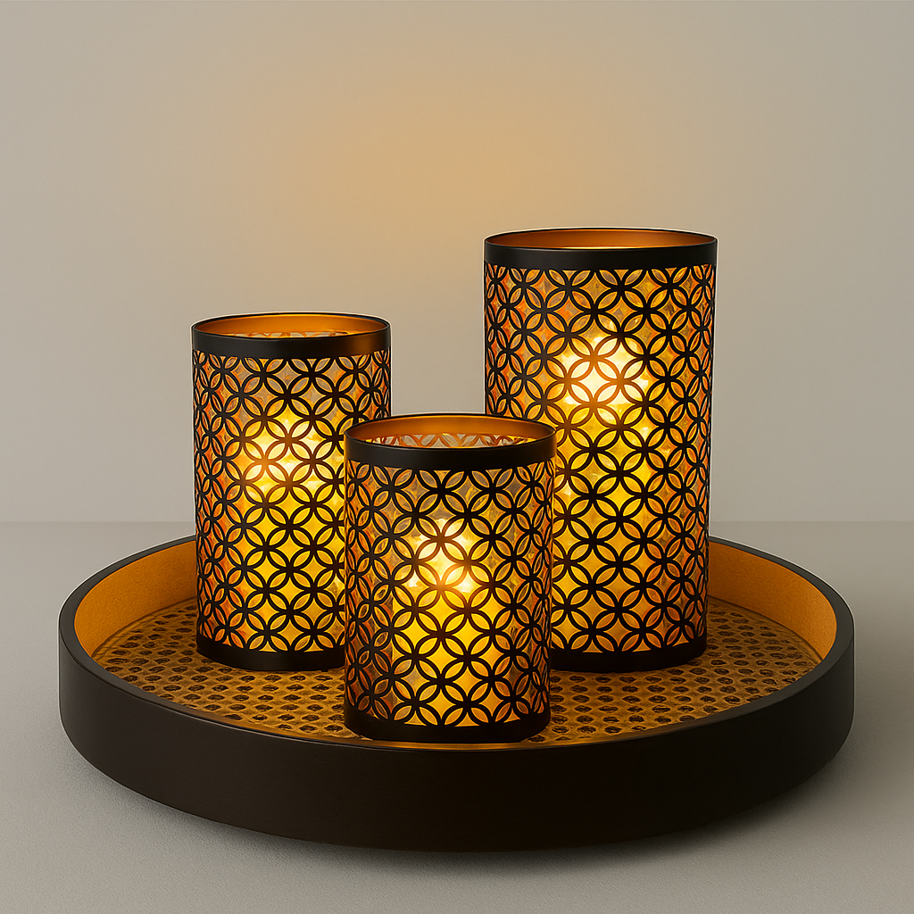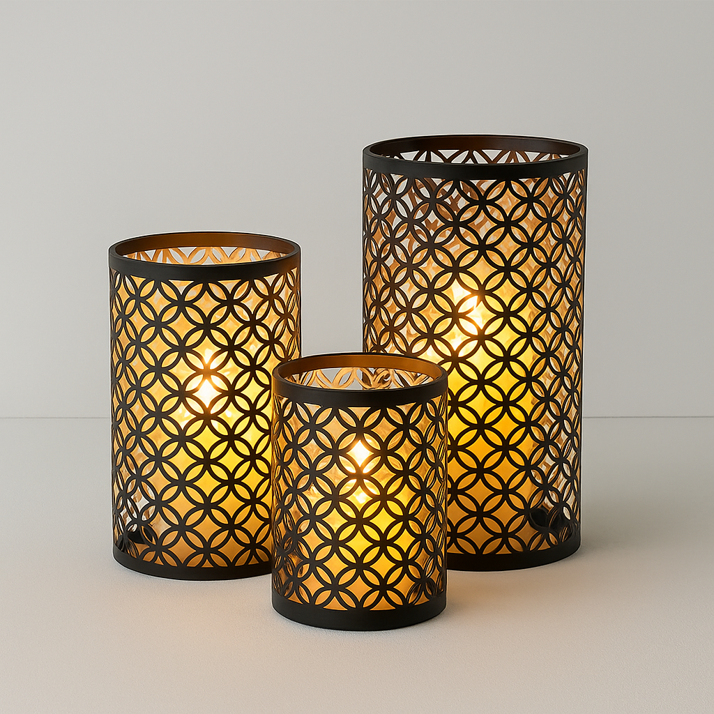 When light meets the poetry of worked metal, the Trilogie de Charme is born. A set of three openwork black iron candlesticks, inspired by the vintage industrial style, to enhance every moment.