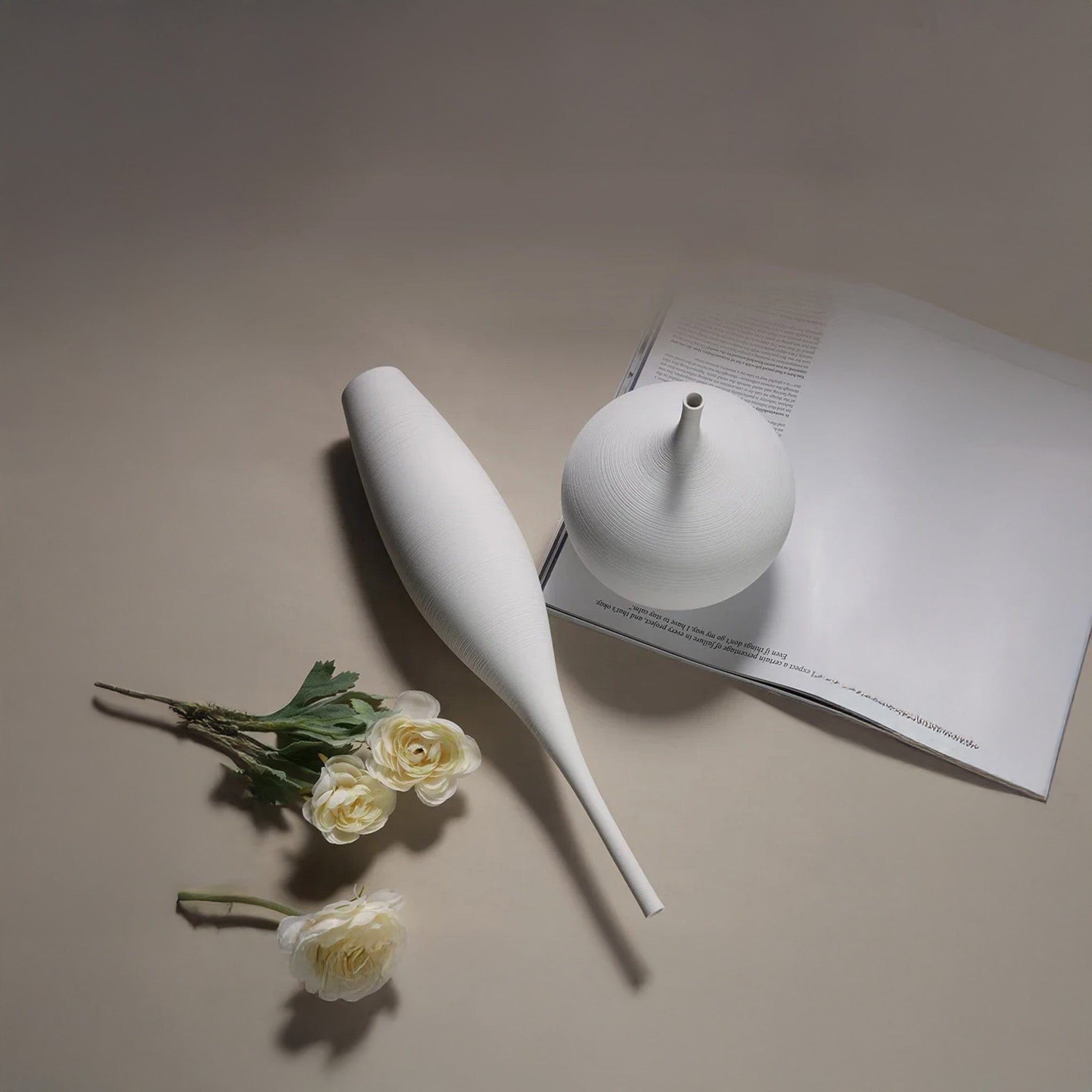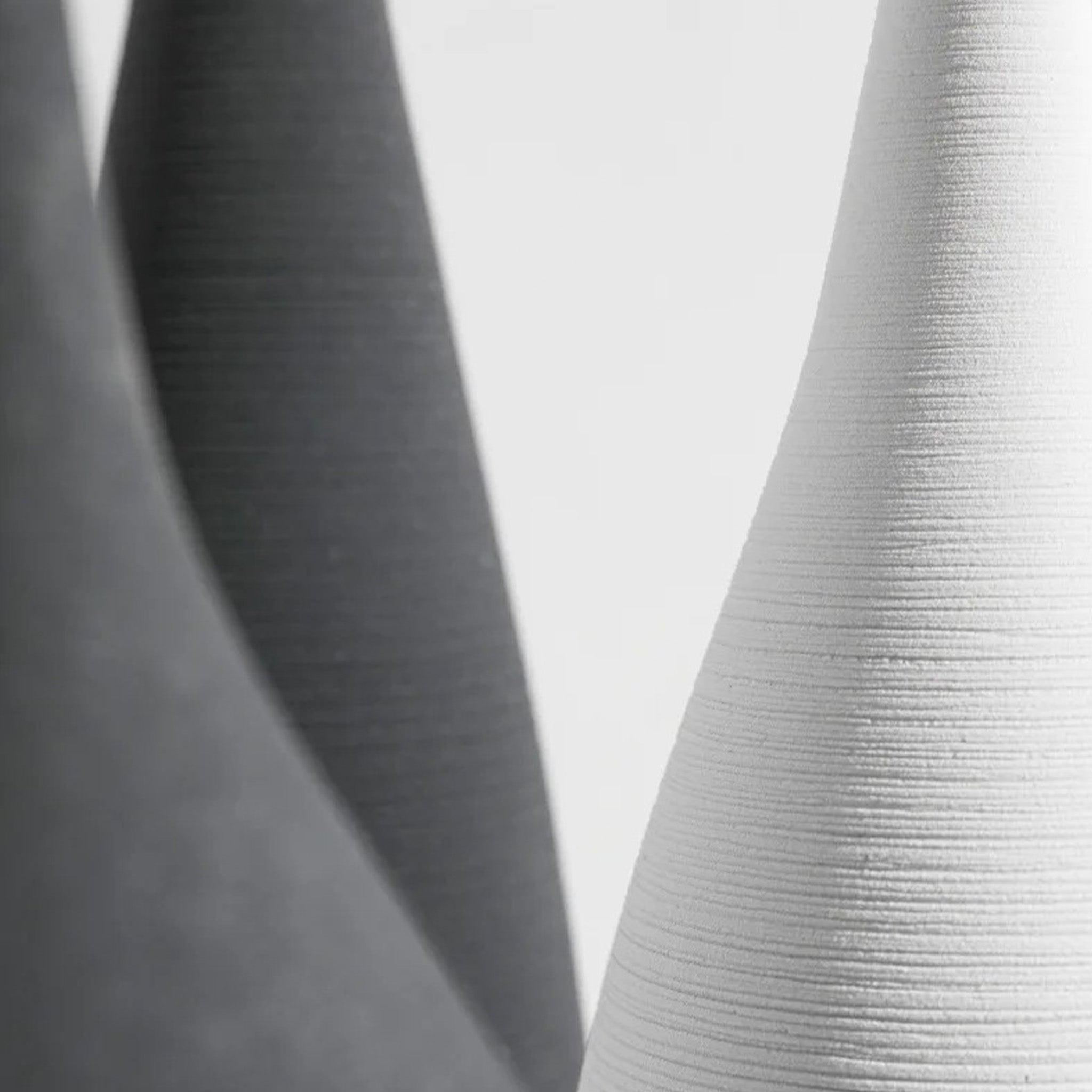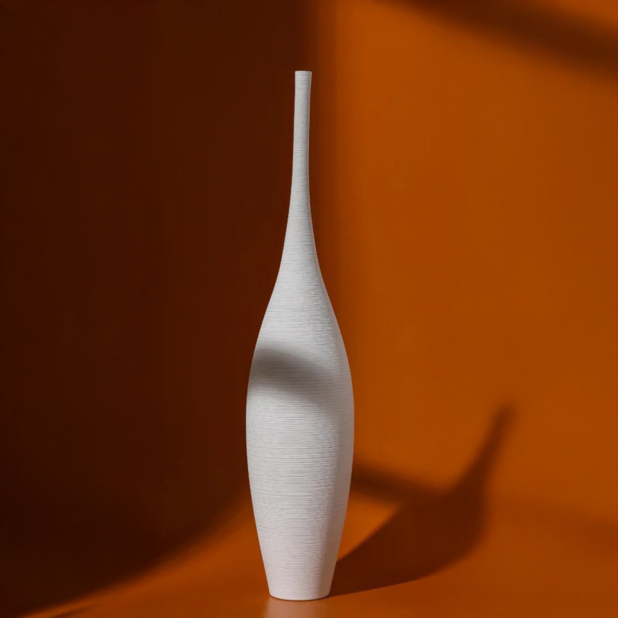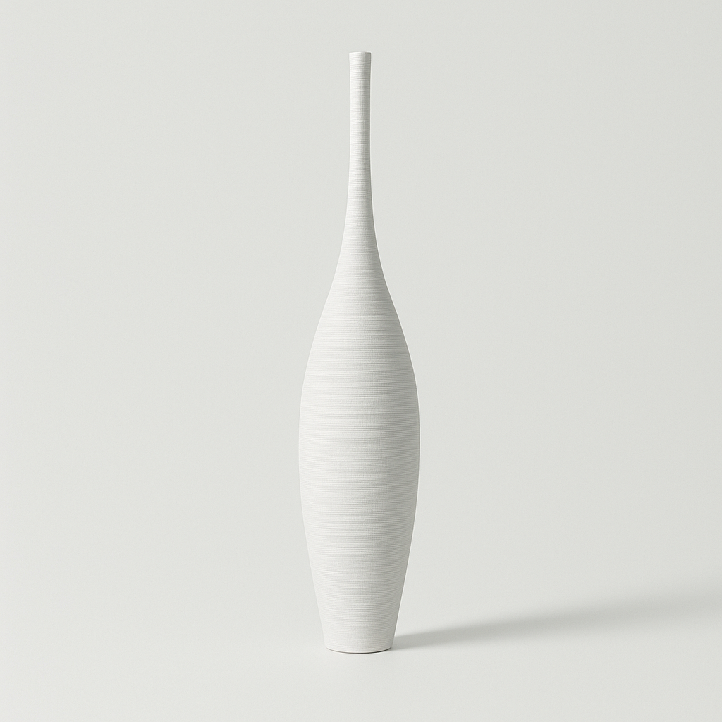 Sculptural allure, elegant curves, and a decidedly minimalist look. This ceramic vase is a statement piece for interior design, available in two timeless colors: deep black or pure white. Its slender silhouette creates a vertical visual effect, ideal for showcasing dried flowers, branches, or simply your taste for contemporary design.